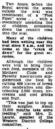 The Royal party then moved by car to Melville Oval, where the schoolchildren were still patiently waiting after eight hours.