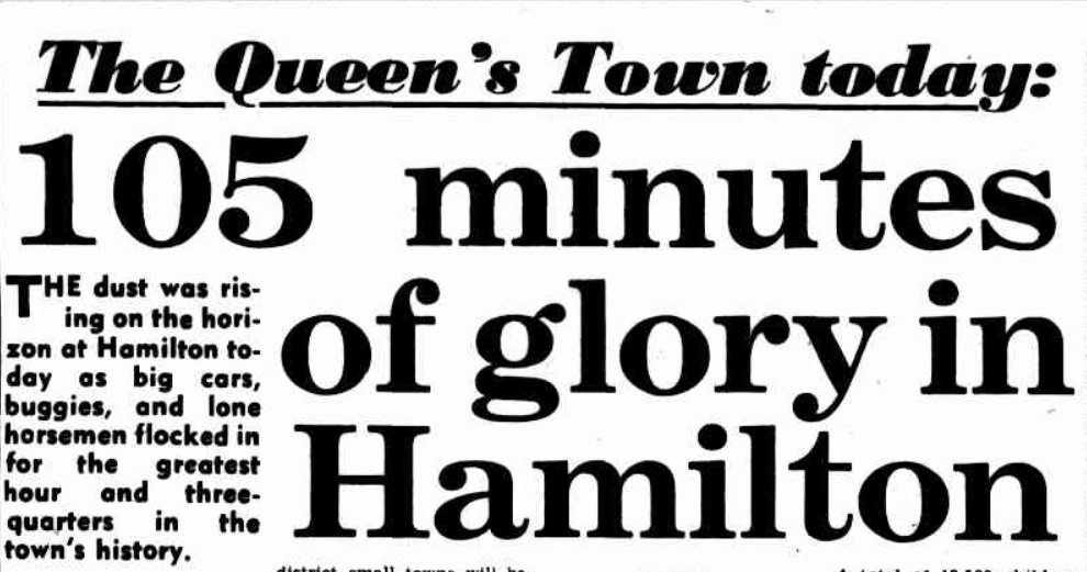 The Queen’s Town today: 105 minutes of glory in Hamilton (1954, February 26). The Argus, p. 2. http://nla.gov.au/nla.news-article26593119