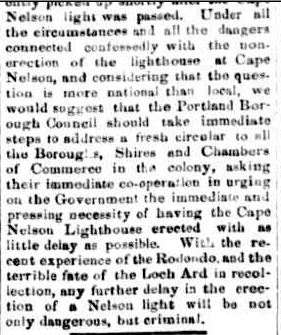 There were other articles from the Portland Guardian about the Cape Nelson Lighthouse also worth reading: