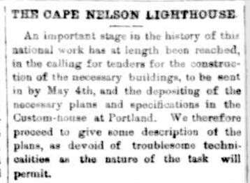 Finally, in 1882, tenders were called for. The Portland Guardian made the announcement on 30 March 1882 and the article in full explained the plans for the proposed lighthouse.