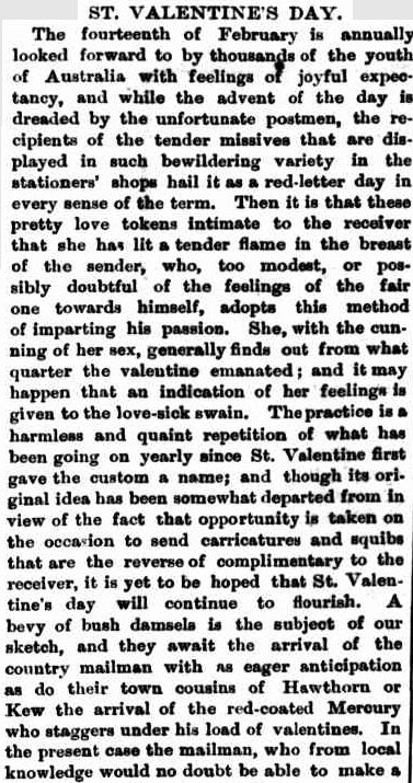 I must admit that I’m surprised that Valentine’s Day wqs celebrated in Oz all those years ago…perhaps it later went out of fashion.