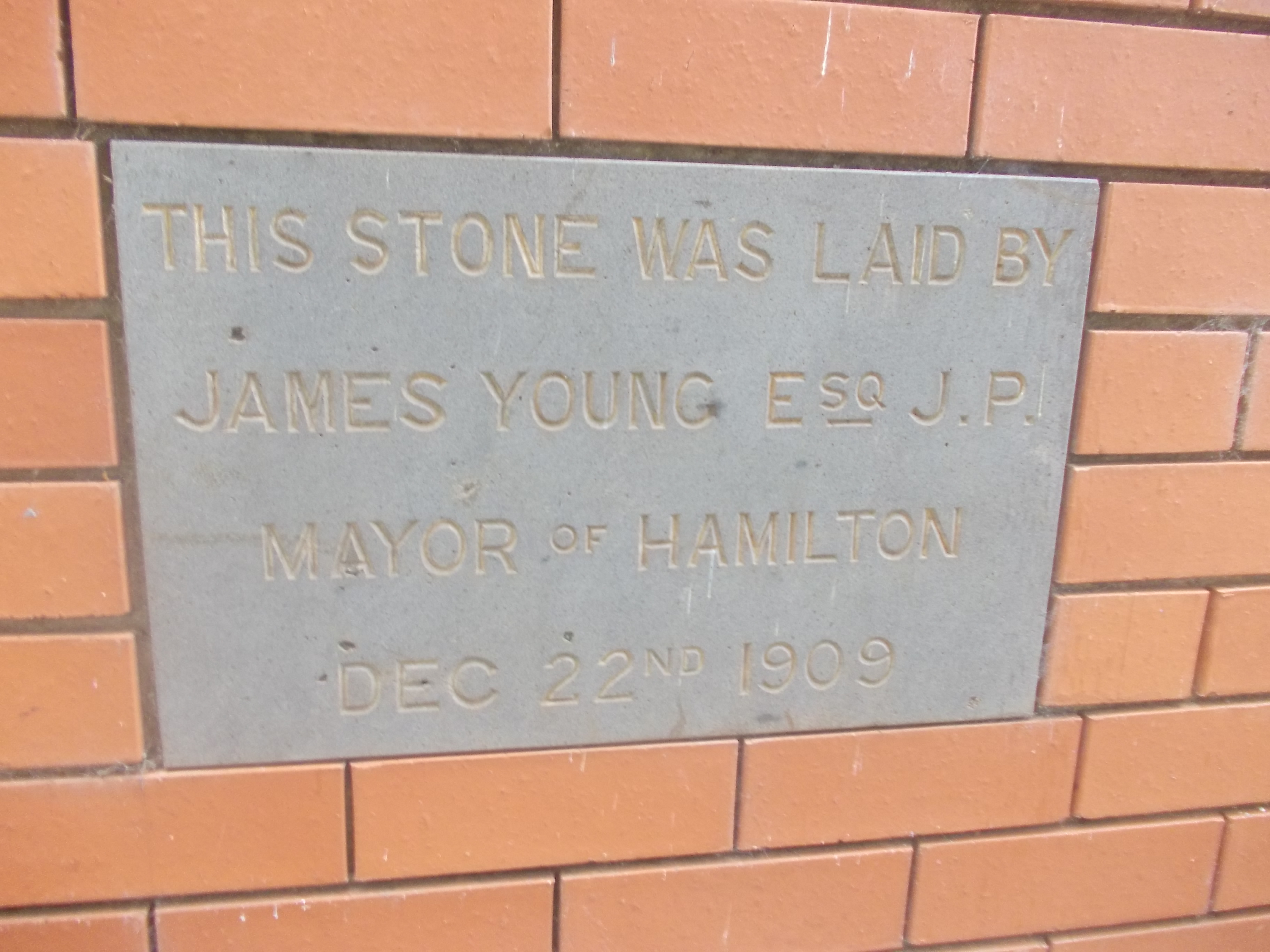 James YOUNG: Died 6 January 1925 at Hamilton. James Young was born around 1851 in Scotland and arrived in Victoria as an infant. The Young family settled in Ballarat and James attended school there before farming at Tatyoon, west of Ballarat. He then joined his brothers in the Wimmera to work with them in their stock and station business. When a branch opened in Hamilton in 1888, James moved south to manage affairs. A successful businessman, James soon built up the trade, also moving into public office as a town councillor for several years. In 1909, he served as Mayor and laid the foundation stone for Hamilton’s new Town Hall in Brown Street (below). Unfortunately, the front section of the Town Hall was demolished in the 1960s and a “modern” façade added.
