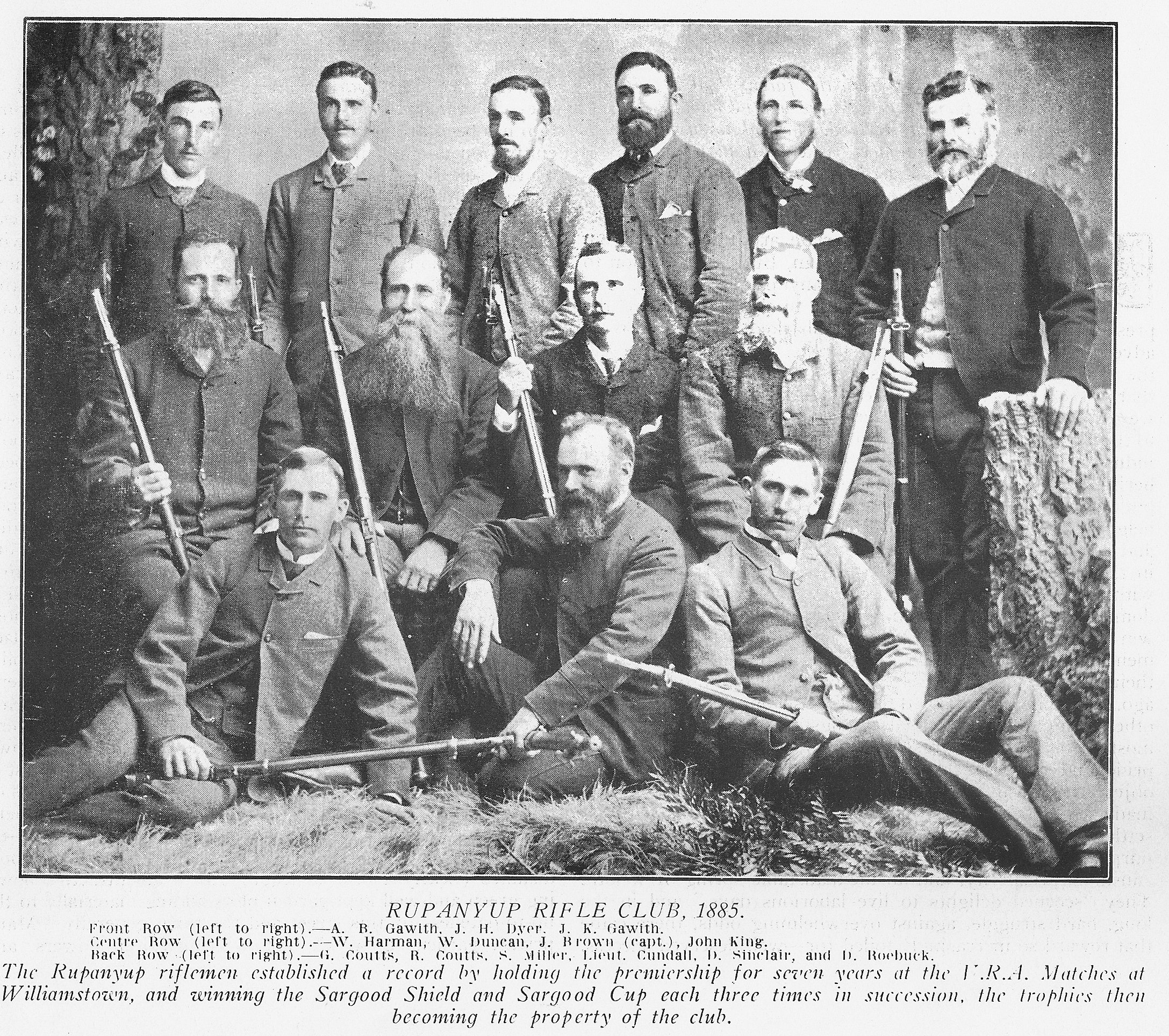 Finding a photo of Alfred was the next aim and I thought I had just one shot at it…a photo of the Rupanyup Rifle Team c1880-90. Having seen their great Facebook page, I thought I would contact the Rupanyup Historical Society. I soon heard back from Helen, the society’s Secretary. The society had a meeting the following evening and the President was an expert on the Sargood Shield. That was great news as the Rupanyup Rifle Club had great success in the Sargood Shield, a highly prized annual competition between Melbourne and country Victorian teams. Alfred was captain of the team in 1886.