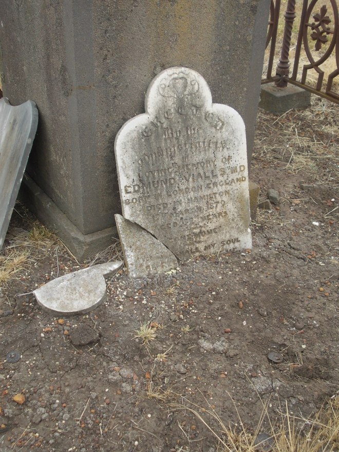 VIALLS, Edmund – Died 19 March 1879 at Hamilton. Edmund Vialls was born in London around 1848. He studied medicine and did his residency at Poplar Hospital, London. In 1867, he won the medicinal and surgical gold medals for his work. Edmund arrived in Victoria in 1870 and by 1872, he was in Richmond at the Melbourne Hospital. He was appointed surgeon at the Hamilton Hospital but he also set up a private practice. He engaged Hamilton builders William Holden (see below) and William Dunn in 1876 to build a home and surgery at the corner of Gray and Kennedy Streets, Hamilton (below), and soon had a thriving practice at the building known as Hewlett House, Hewlett being the maiden name of Edmund’s mother Elizabeth.