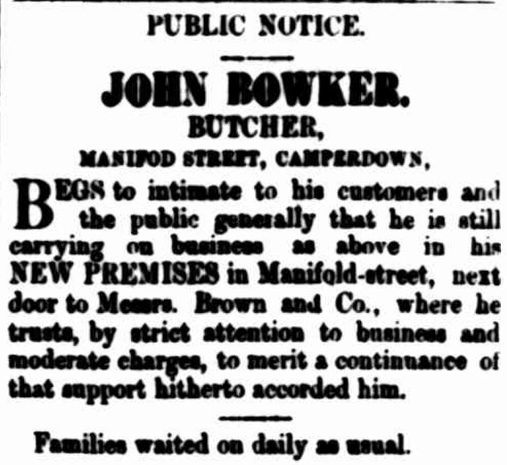 In February 1874, John married Eliza “Lissie” Lord at Geelong. John was a butcher by trade and operated his shop in Camperdown.