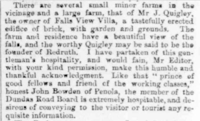 In 1860, he sold the Inn for £4,000 and acquired 5000 acres at the Wannon which became the Falls View Estate.