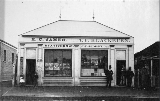 JAMES, Henry Cottenham – Died 4 November 1898 at Casterton. Henry James was born in Nottingham, England, around 1831. He arrived in Victoria in the early 1850s and went to the Ballarat diggings. He then went west to Carngham, where he opened a store. While there, Henry took up a share in the Britannia Reef at Carngham. When he sold his share, he made a good profit, so he took a trip back to his hometown of Nottingham. He also took the opportunity to tour Europe before returning to England to marry Helen Wayte. On arrival back in Victoria, Henry and Helen went to Pitfield, where two children were born. By 1875, the James family were in Casterton, and Henry opened a business selling stationery.