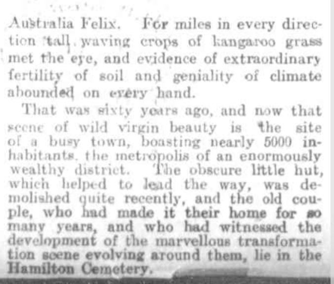HAMILTON PIONEER. (1912, January 13). Leader (Melbourne, Vic. : 1862 – 1918, 1935), p. 32. Retrieved May 13, 2019, from http://nla.gov.au/nla.news-article198127055