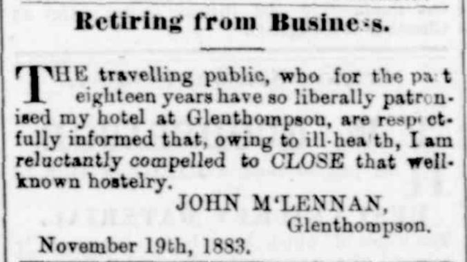 PRESENTATION AT GLENTHOMPSON. (1884, September 16). Hamilton Spectator (Vic. : 1870 – 1918), p. 4. Retrieved May 13, 2019, from http://nla.gov.au/nla.news-article225662520