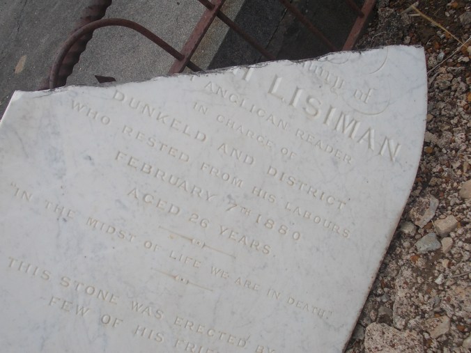 There have now been four Broken Memories posts. So far you have seen the broken headstones of Samuel and Frances Hing, Joseph Lissiman, and Thomas Gorman and his three children. While it wasn’t planned, Parts 2 and 3 have the Hamilton district Diptheria epidemic of 1879/80 interwoven through the stories. Likewise, Archdeacon Gustaves Innes, of Hamilton’s Anglican Church during that period also makes an appearance in both posts. There will be more about Gustaves in future posts and the cat I promised in my last update. The links to the Broken Memories posts so far are –