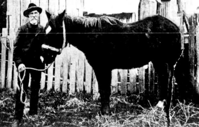 Nugget’s long life ended on 29 August 1906, less than three months short of his 46th birthday. Richard’s friends knew his attachment to the horse and arranged a photo as a special memento, and that photo is the subject of this post.