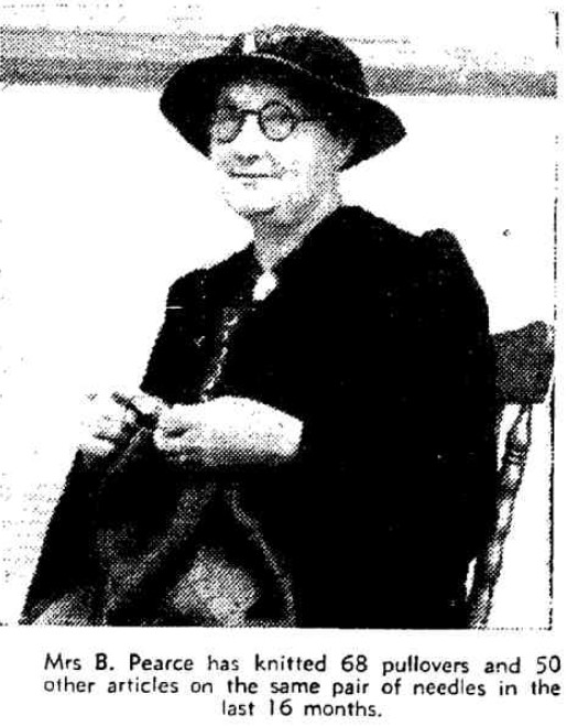 This is Mary, Bazil’s wife, knitting up a storm in 1941 for the war effort, all done on a single pair of knitting needles.
