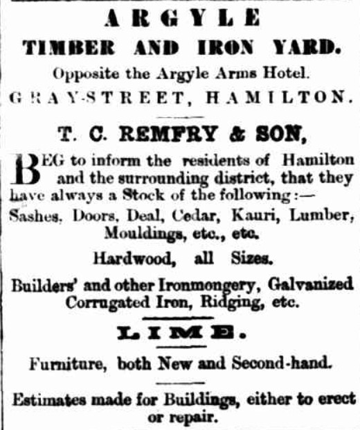 By April 1862, Thomas had a listing in the Hamilton Spectator‘s Hamilton Business Directory and lived in Gray Street. He later went into business with his son opposite the Argyle Arms Hotel in Gray Street.