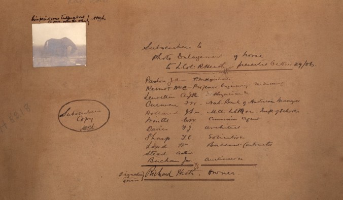 Welcome to another Take a Photo post about a man and his horse. The State Library of Victoria holds the photo below, taken on 14 February 1905. It reveals a wonderful story about a horse called Nugget and its owner, Richard Heath.