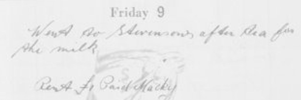 I wondered if Bill went down the street on Friday 9 June 1933. I turned the page… no. But he went to Stevenson’s for milk.