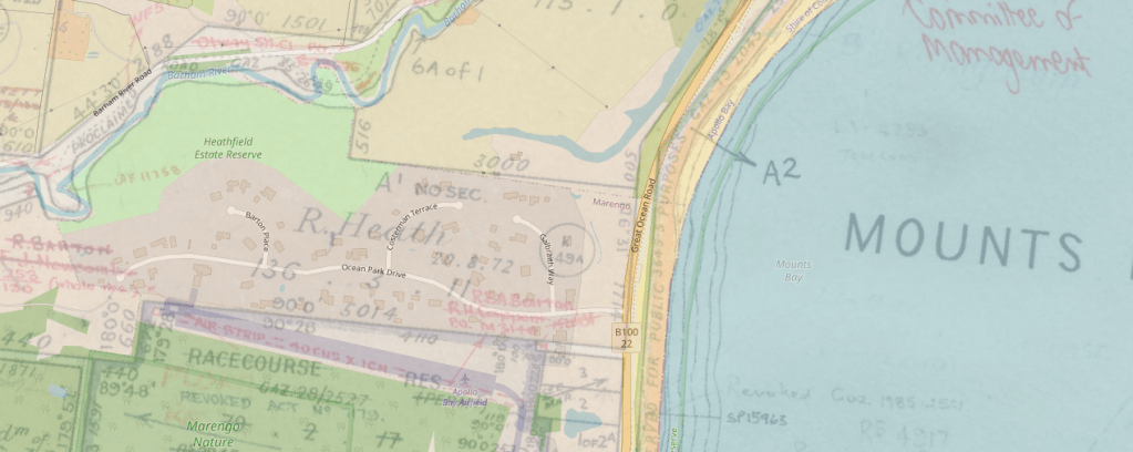 Richard selected the land in 1860 after walking along the coast from Barwon Heads to Apollo Bay. You can see “R. Heath” on his allotment on the parish plan below, along with current-day uses for the land.