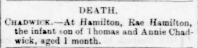 In 1871, another transfer took Robert to Hamilton, where he was the District Inspector of Police, and took up residence in French Street. In November 1875, illness forced his retirement, and he was soon bedridden. Robert succumbed to his condition on 21 December 1875, aged forty-four. Robert was very popular in Hamilton and a lengthy funeral cortege, including many police members, left his home on 23 December for the Hamilton (Old) Cemetery.