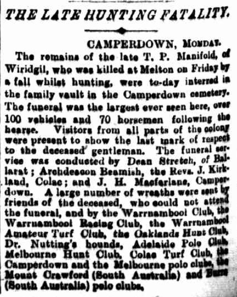 The article also told of an c1851 painting of the Cornelius sold at a clearing sale after the death of Donald Cameron of Oakbank near Heywood in 1879. The auctioneers forwarded it to Thomas Clarke Jr at Merino and John Smith of Grassdale had a print made of the original.
