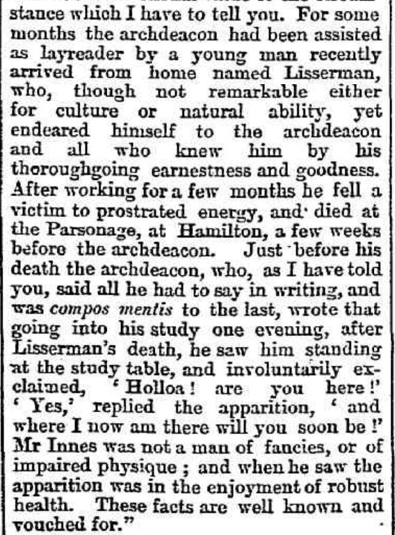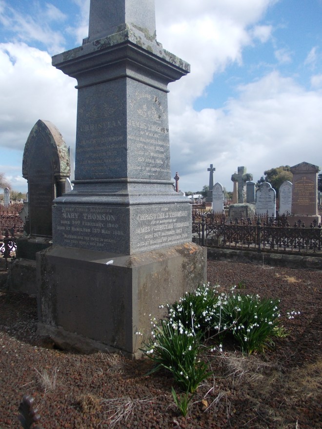 The last edition of Broken Memories touched on the diphtheria epidemic of 1880 in the Hamilton district which claimed the life of Archdeacon Gustaves Innes on 9 April that year. This edition goes back to those times and looks further at the epidemic and those touched by it. The next headstone is located in the Church of England section of the cemetery, only a short distance from the grave of Gustaves Innes