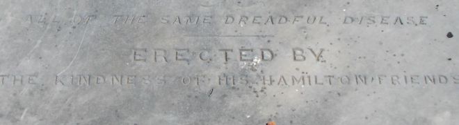 While organising photos after a visit to the Hamilton cemetery, I came to the headstone above and found I could only make out the name Gorman and the year 1880. However, a search of the Hamilton Spectator quickly revealed the sad story of stationmaster Thomas Gorman and his three children, Ethel, Jane, and Thomas Jr. As recorded on the Gorman headstone “erected by the kindness of his Hamilton friends”, the family was victims of the “same dreadful disease” Diphtheria.