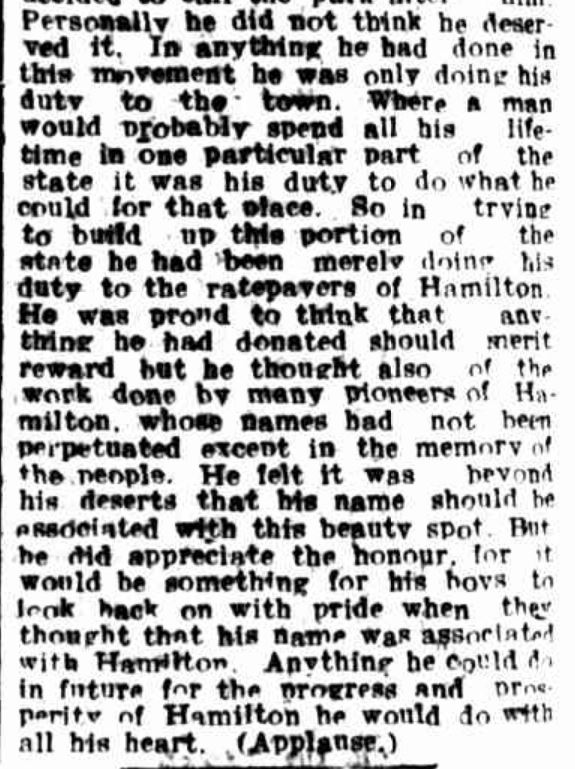 During WW1, George Leonard Hamilton, a son of John and Ann served with the 7th Field Engineers as a farrier reaching the rank of Sergeant and being Mienitoned in Distpatches. Mary died on 11 November 1931. In March 1933, just six months before John’s death, the Camperdown Chronicle ran a story on John, preserving some of his memories. John was seventy-seven at the time of his death on 13 September 1933. He was buried at the Camperdown Cemetery leaving five sons and one daughter.