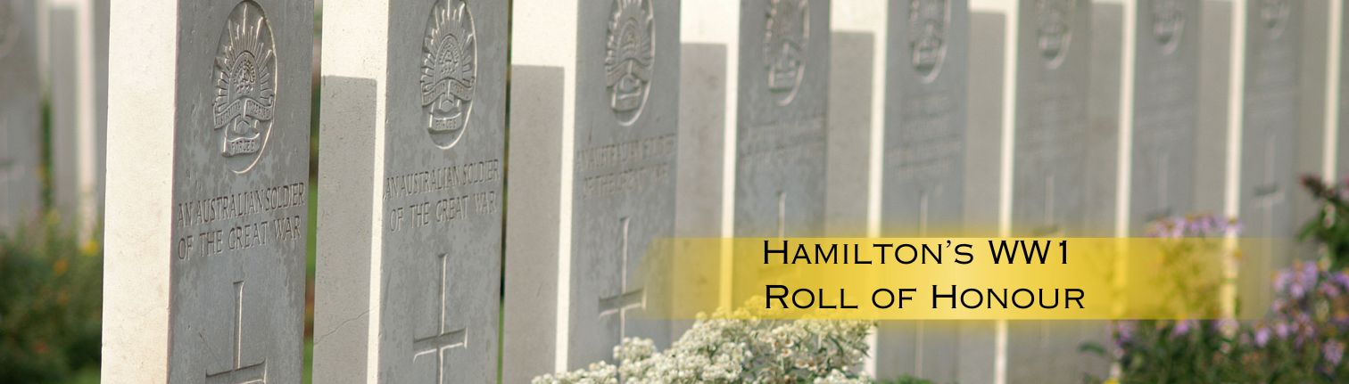 Remembering the WW1 volunteers who were born, educated, worked or enlisted in Hamilton, Victoria and did not return from the war. To read their stories, click on the underlined names. ALLEN, William Wallace Bentley (Sgt) 9th Australian Infantry Battalion 1886-1915 Born: Hamilton, Victoria Died: Gallipoli, Turkey ANDERSON, Edward Handfield (2nd Lt) 57th Australian Infantry Battalion 1886-1915 … Continue reading Hamilton’s WW1 Roll of Honour