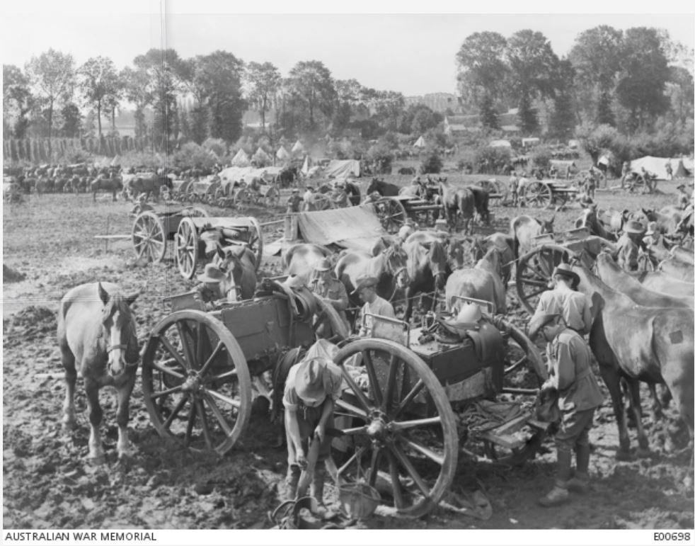 THE 11th FIELD ARTILLERY BRIGADE IN FRANCE IN 1917. Image courtesy of the Australian War Memorial https://www.awm.gov.au/collection/C388084