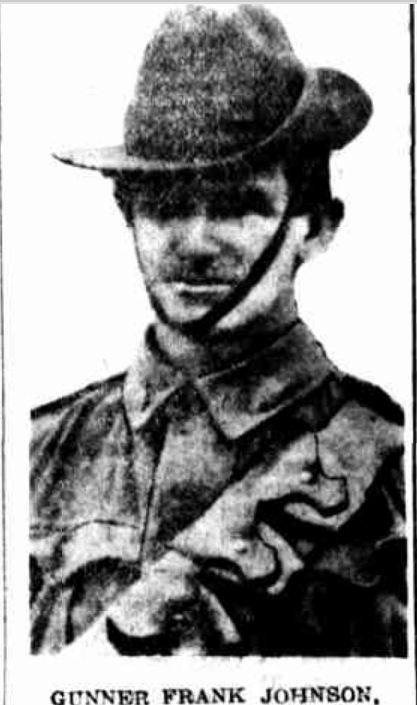 Frank Johnson is remembered on Hamilton’s Christ Church WW1 Honour Board.