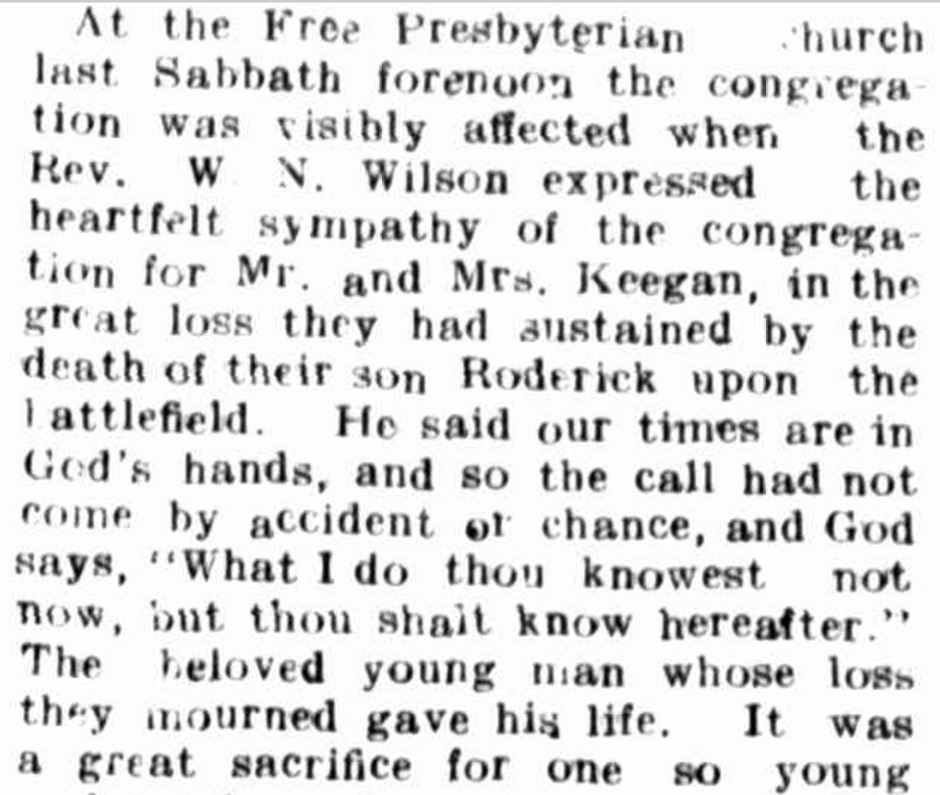 By the end of November, John and Annie Keegan heard the news their son was dead. A notice was published in the Hamilton Spectator on 29 November 1917.