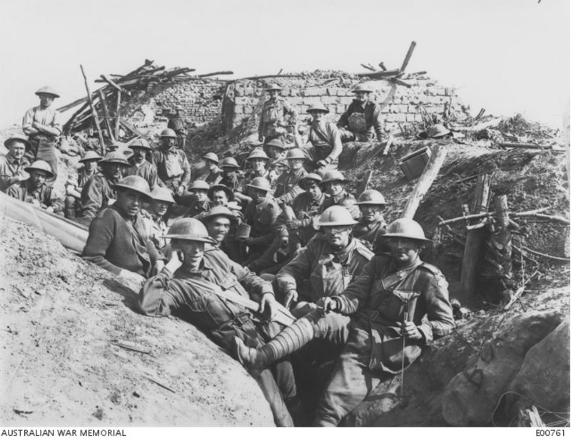 MEMBERS OF 50th BATTALION IN AN OLD TRENCH AT ZONNEBEKE, SEPTEMBER 1917. Image courtesy of the Australian War Memorial. https://www.awm.gov.au/collection/E00761/