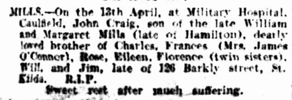 Family Notices (1930, April 15). The Argus (Melbourne, Vic. : 1848 – 1957), p. 1. Retrieved May 13, 2019, from http://nla.gov.au/nla.news-article4081497