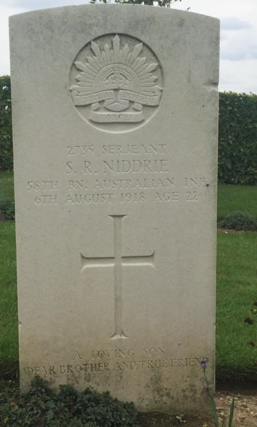 Commonwealth War Graves Commission – Villers-Bretonneux Cemetery – Stanley Roy Niddrie