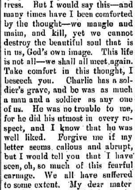 The battle took a toll on lives and emotions. Fighting beside Alfred was a lad from Maffra, Private Charles Forster. During the battle, after reaching an objective, Alfred noticed a group of men he soon realised were Germans. They fired at Alfred only to miss him and instead hit nineteen-year-old Charles in the forehead. Alfred took the time to write to Charles’ mother in Maffra. Although he was just twenty-four himself, Alfred thought of Charles as a boy. He told Mrs Forster, Charles had shown him photos of her and his siblings in the week before Charles was killed. He continued,