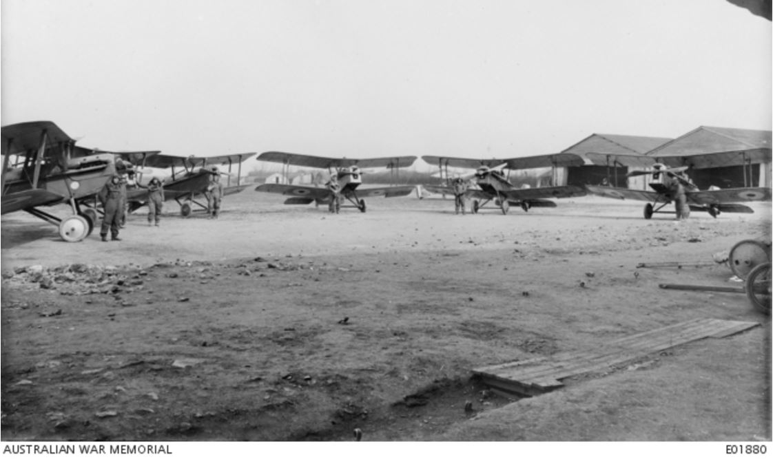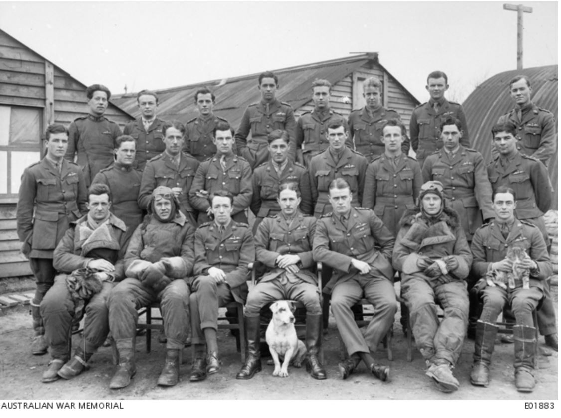 OFFICERS OF THE AFC NO. 2 SQUADRON 25 MARCH 1918, NORTHERN FRANCE. Image courtesy of the Australian War Memorial https://www.awm.gov.au/collection/E01883/