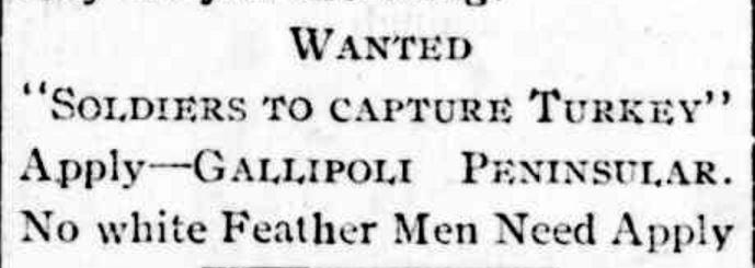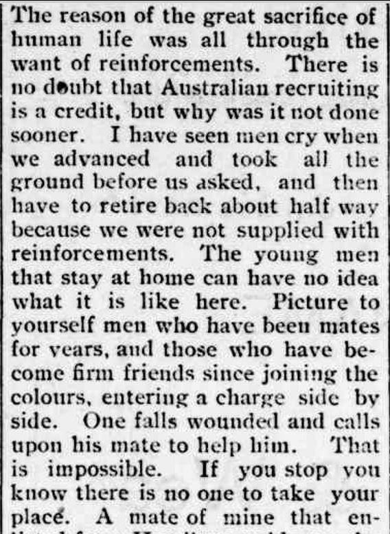 “WANTED!” Mortlake Dispatch (Vic. : 1914 – 1918) 1 December 1915: 2. Web. 12 Apr 2017 <http://nla.gov.au/nla.news-article130001237>.