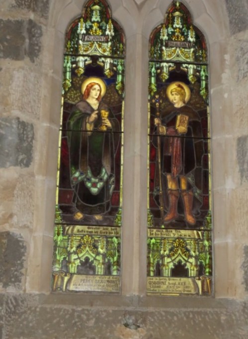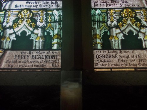 Also unveiled on 17 June 1917 was an altar railing dedicated in memory of the men who had given their lives and a memorial window for Percy Beaumont Osborne. Percy was the step-son of Ven. Archdeacon Harris of Christ Church. The two figures on the window were St John representing love and St Alban representing courage.