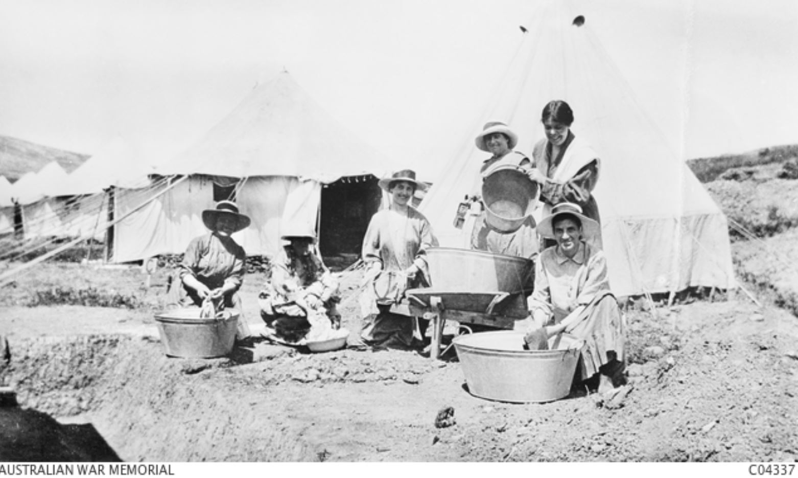 SISTERS OF THE 60th GENERAL HOSPITAL ON WASHING DAY AT SALONIKA, GREECE 1917 Image courtesy of the Australian War Memorial https://www.awm.gov.au/collection/C43216