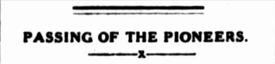 “Of late the inexorable reaper has been unusually busy among our oldest and most prominent citizens, and we have the sorrowful task of recording the loss to the town of another of its pioneers”