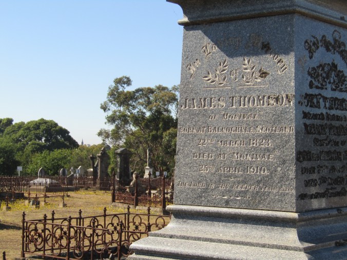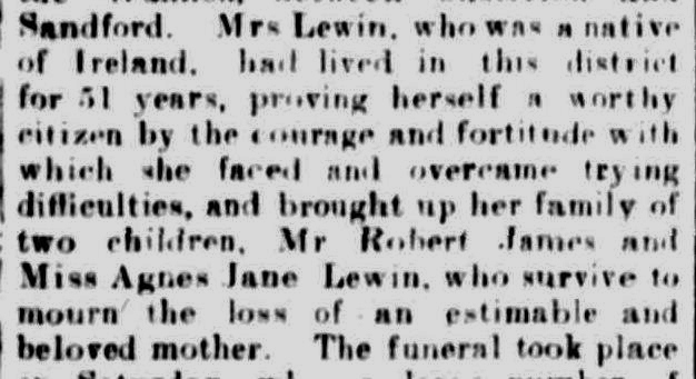 A Hamilton Spectator article from 2 September 1897 describing the Fulham stud stated James was “as enthusiastic a sheep man as one would care to meet”. James was a member of the Balmoral Pastoral and Agriculture Society. He never married and left two sisters still living in Ireland at the time of his death. James was buried at the Harrow Cemetery.