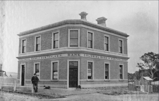COLONIAL BANK OF CASTERTON c1880 Image courtesy of the State Library of South Australia Image no. B 21766/88 https://collections.slsa.sa.gov.au/resource/B+21766/88