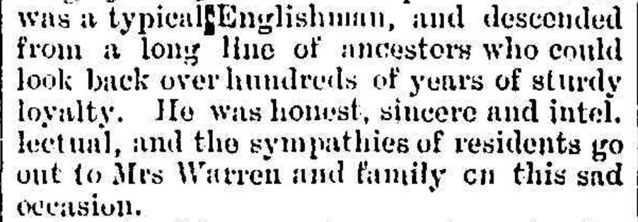 Along with Ann, George left seven daughters and five sons at the time of his death. Two sons were serving overseas. Francis Edgar Warren was killed at Gallipoli six months after his father’s death on 17 June 1915. Leslie Parsons Warren later returned home. Ann continued running Myrtlebank after George’s death until her own death in 1935 at Hamilton.