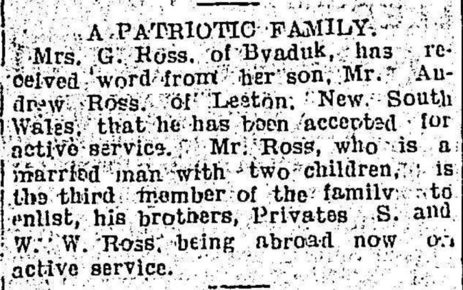 In 1922, a War Memorial was officially unveiled at Byaduk to remember the fallen. A fitting tribute to the men from Byaduk who served and died.