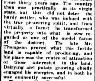 Thomas THOMPSON: Died 17 November 1945 at Portland. Thomas THOMPSON from Ireland began his time in Australia in Western Australia as a miner. Unsuccessful he headed to Victoria and the Portland district.