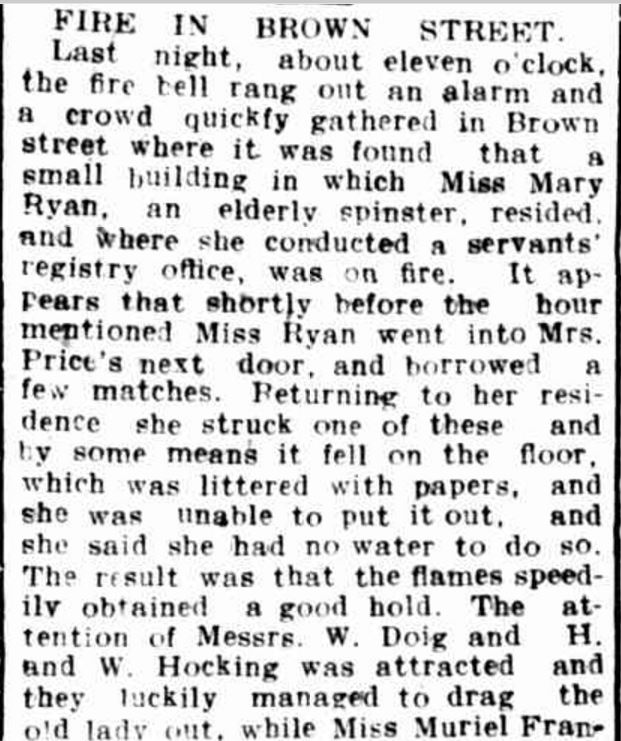 “FIRE IN BROWN STREET.” Hamilton Spectator (Vic. : 1870 – 1918) 20 February 1914: <http://nla.gov.au/nla.news-article119823533>.