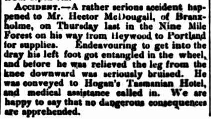 Lucky Hector McDougall had “no dangerous consequences” after his accident when he tangled with a dray’s wheel.