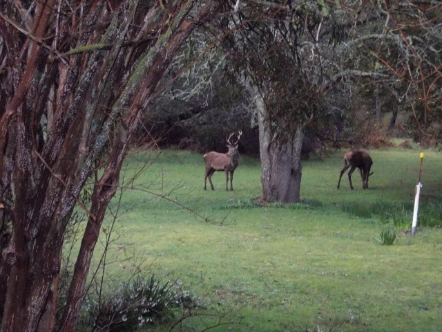 These are deer in Dad’s backyard, descendants of those in the 1881 sketch. Last Friday evening, with fires burning in the mountains three kilometres away, a stag ate fallen pears from one of Dad’s trees, oblivious.