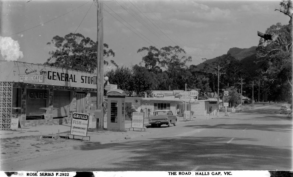 MAIN STREET, HALLS GAP. Image courtesy of the State Library of Victoria. Image no, H32492/8694