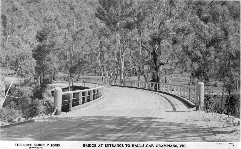 DELLEY’S BRIDGE, HALLS GAP. Image Courtesy of the State Library of Victoria. Image no. H32492/6669 http://handle.slv.vic.gov.au/10381/58616