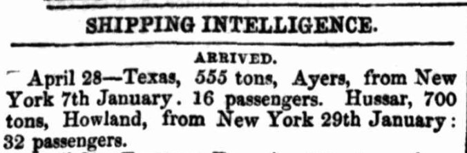 SHIPPING INTELLIGENCE. (1857, May 1). Mount Alexander Mail p. 4. http://nla.gov.au/nla.news-article197086715