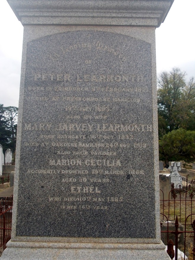 After the tragic death of her husband and children in 1870, Margaret Drummond continued to live in Coleraine. In her old age, she lived with her son Richard. She died on 1 March 1914 her life punctuated with tragedy. She was buried at the Coleraine Cemetery with David, James, and Margaret (11). Richard died on 17 July 1932 at Coleraine (12). Margaret’s other surviving son David Jr. settled at Streatham. He died in 1941 at Sebastopol (13).